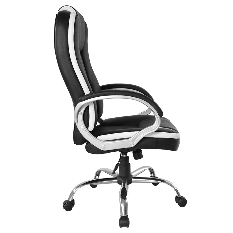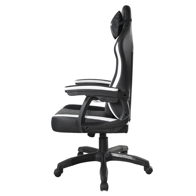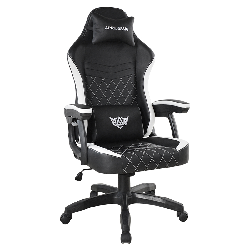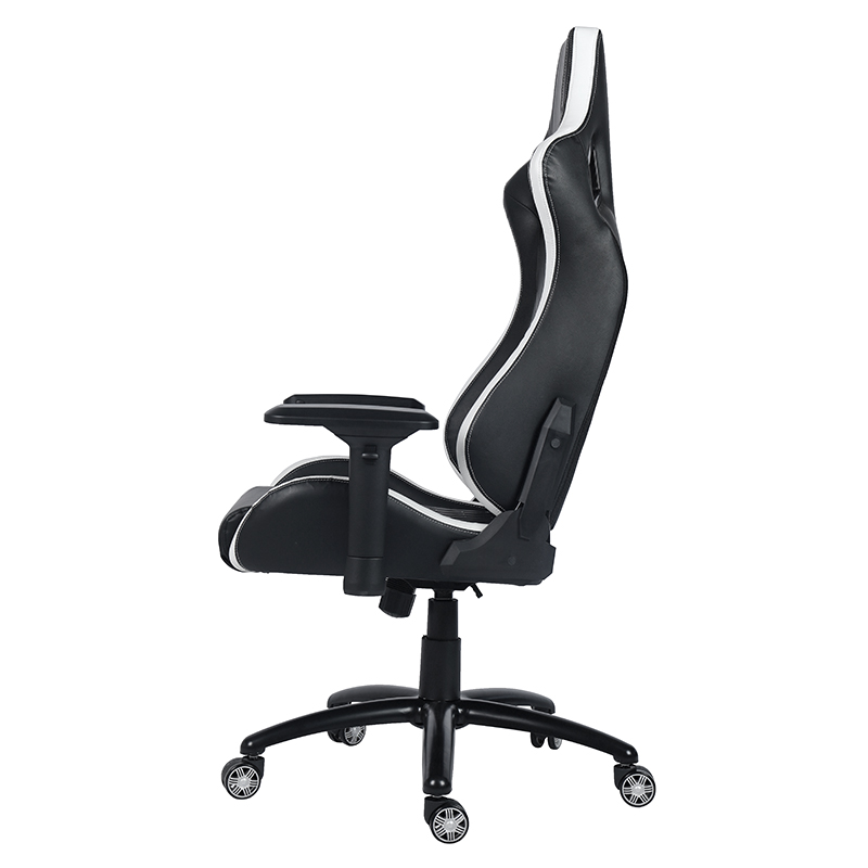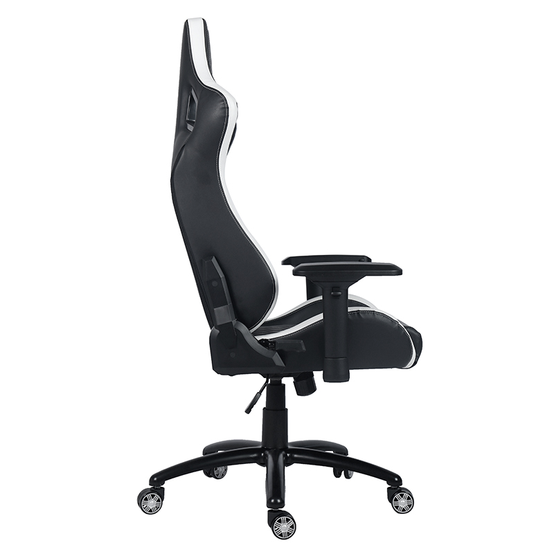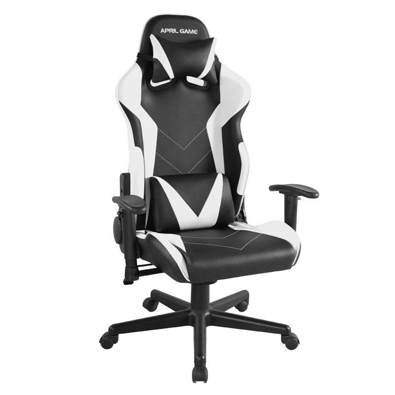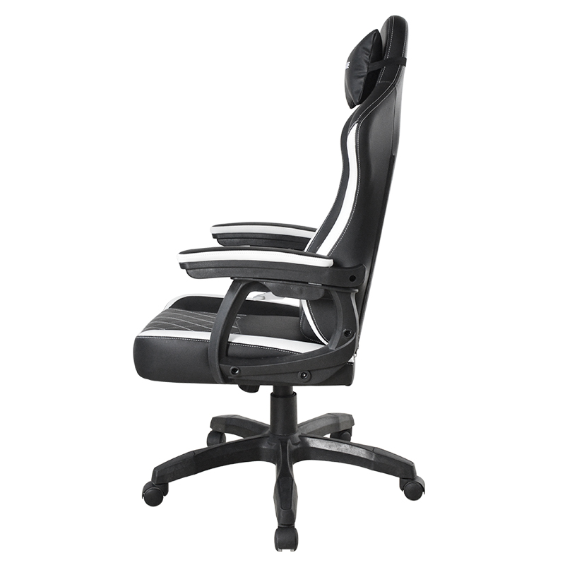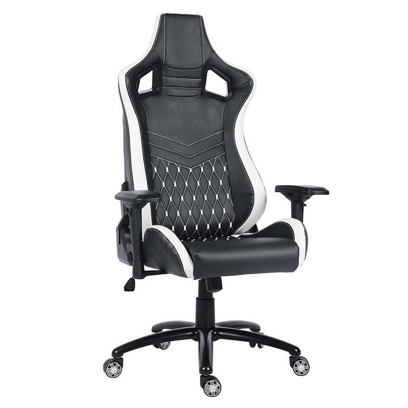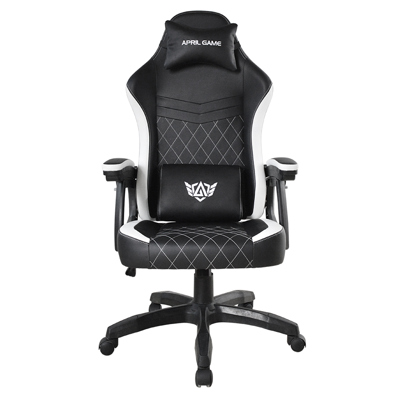 Bantal Kursi Kulit Modern Hitam & Putih Kursi Gaming Komputer Rumah Putar Kursi Gaming E-sport dengan Sandaran Tangan Linkage (T-7138)