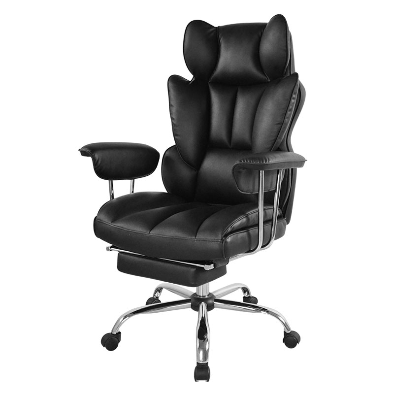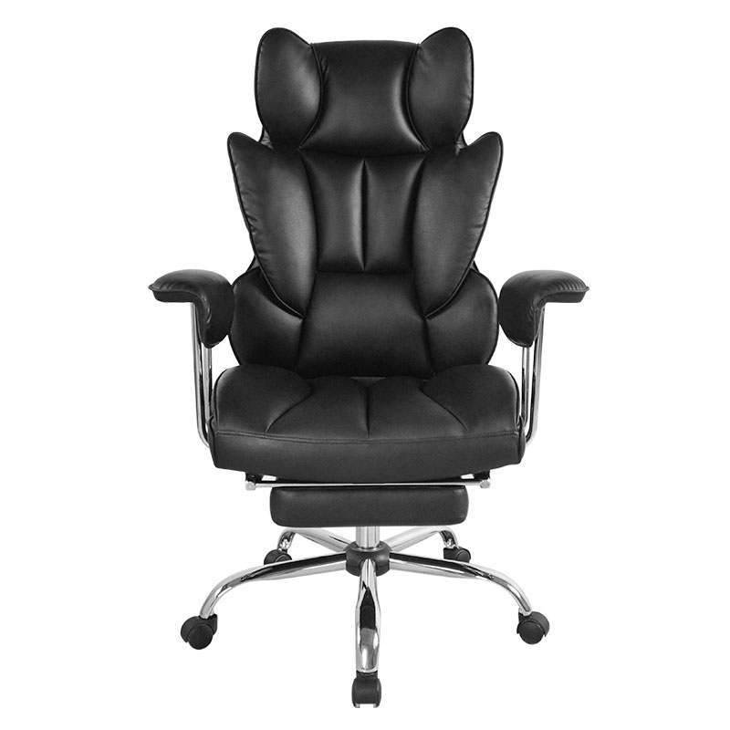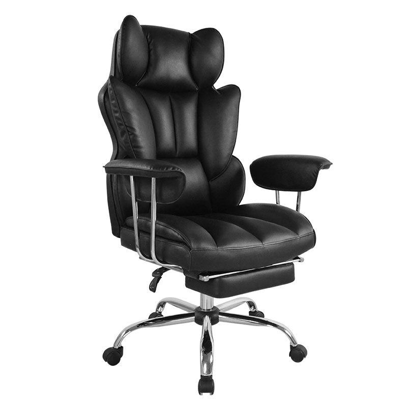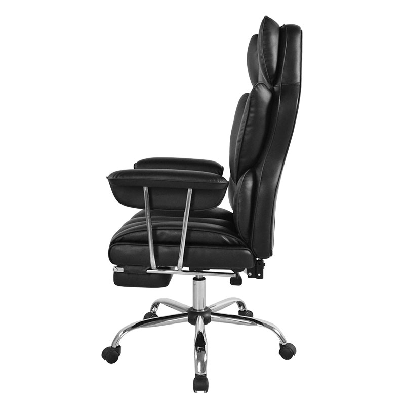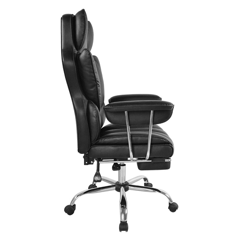 Kursi Kantor Bos Sandaran Tangan Bantalan Lipat Luar Kulit Hitam Ergonomis Punggung Tinggi dengan Pijakan Kaki (M-6151)