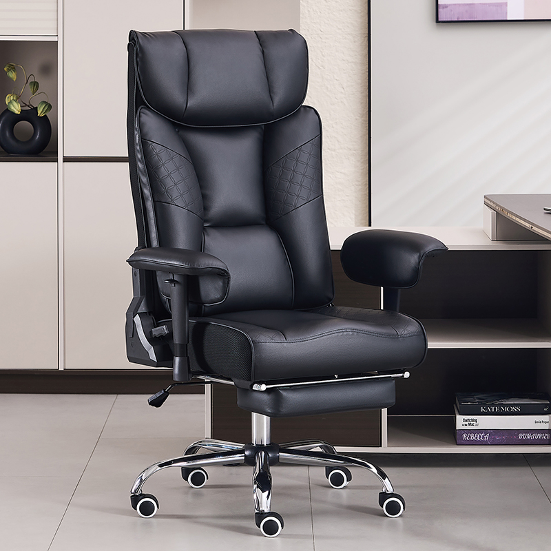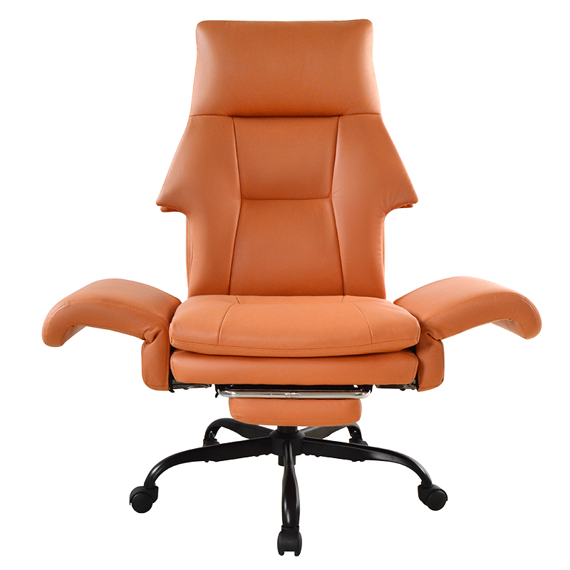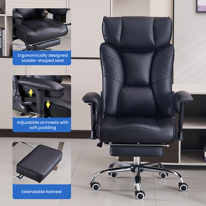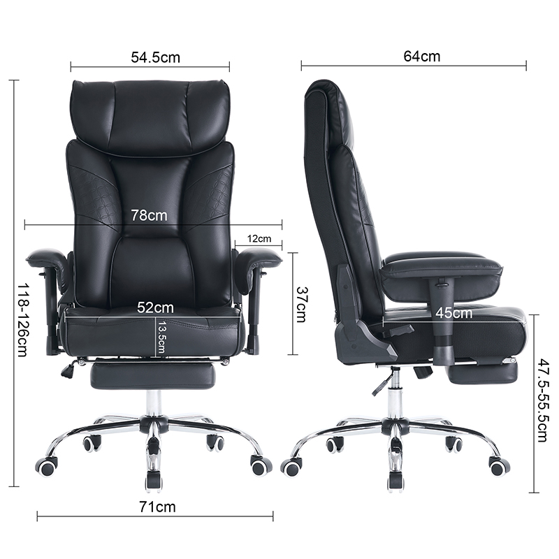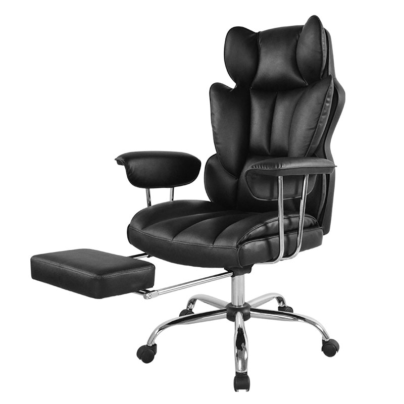 Kursi Kantor Bos Sandaran Tangan Bantalan Lipat Luar Kulit Hitam Ergonomis Punggung Tinggi dengan Pijakan Kaki (M-6151)
