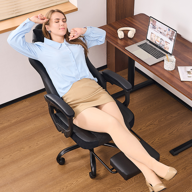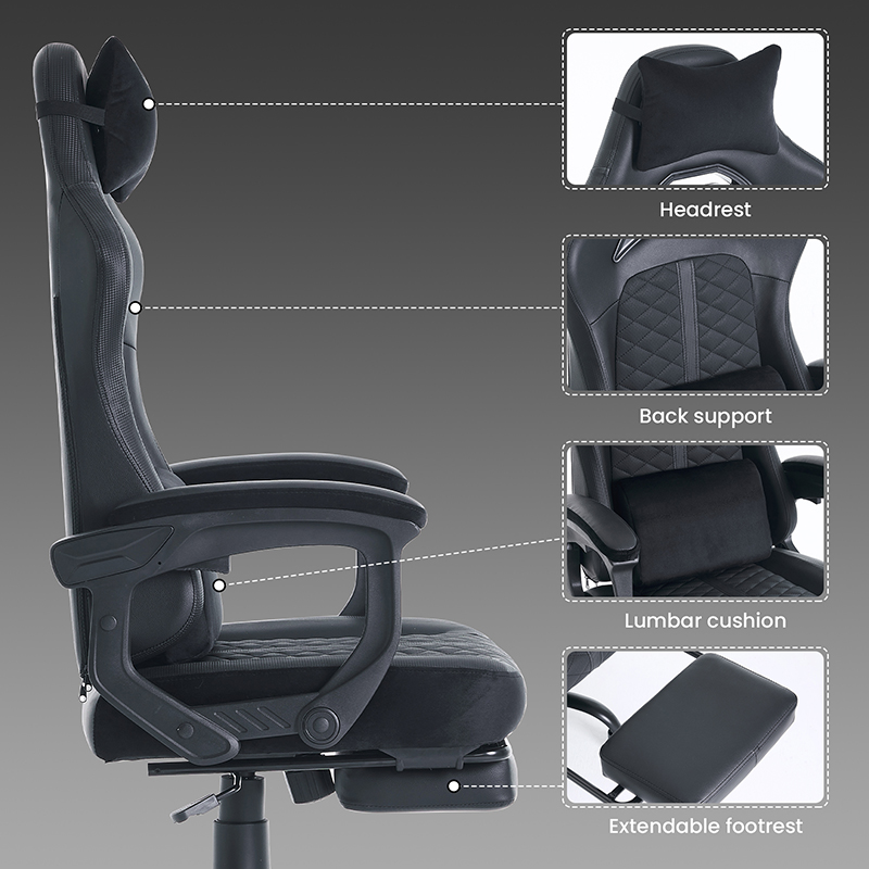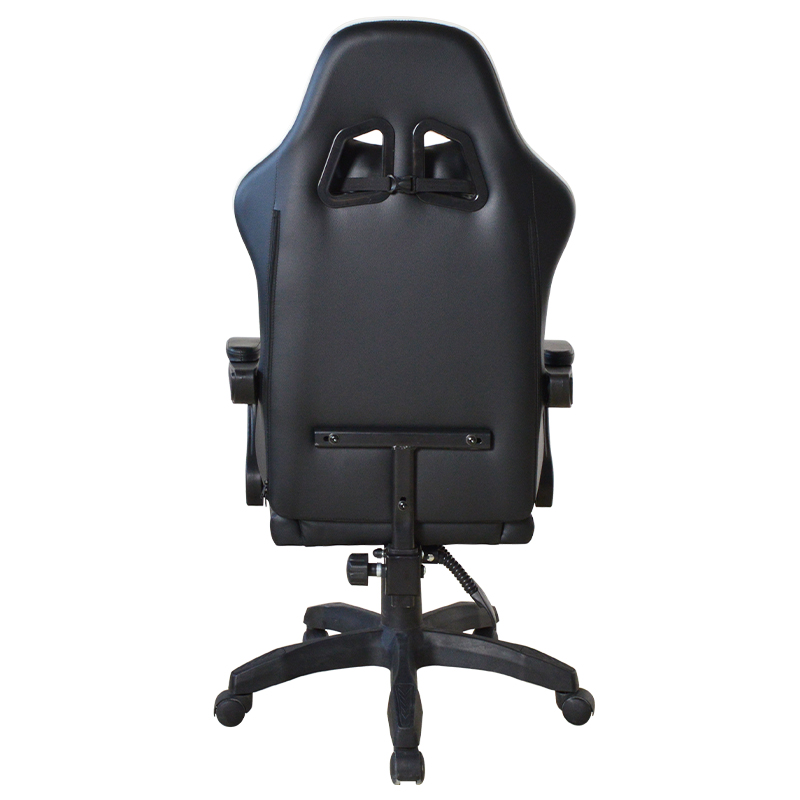 Kursi Gaming Ergonomis Kulit Hitam Dapat Disesuaikan Kursi Gaming Penopang Lumbar Berbaring dengan Pijakan Kaki (T-7138)