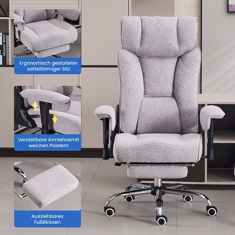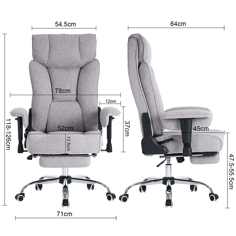 Kursi Kantor Eksekutif Sandaran Tangan Bantalan Dapat Disesuaikan Tinggi Lukisan Kain Abu-abu Ergonomis Punggung Tinggi (M-6150)